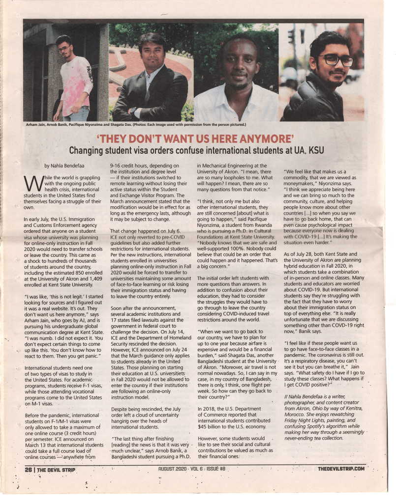 In early July, the U.S. Immigration and Customs Enforcement agency ordered that anyone on a student visa whose university was planning for online-only instruction in Fall 2020 would need to transfer schools or leave the country. This came as a shock to hundreds of thousands of students around the country, including the estimated 850 enrolled at the University of Akron and 1,409 enrolled at Kent State University.